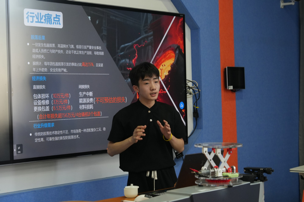 决赛现场,机械工程系的选手们精神饱满、自信从容。他们通过精心制作的PPT,向评委和观众详细阐述项目的创意来源、技术原理、市场前景和应用价值;在实物展示环节,选手们亲自操作演示产品,让大家更直观地感受项目的创新性和实用性;面对评委们提出的各种问题和质疑,选手们沉着冷静,凭借扎实的专业知识和对项目的深入理解,一一作出精彩解答,赢得了评委们的一致好评。