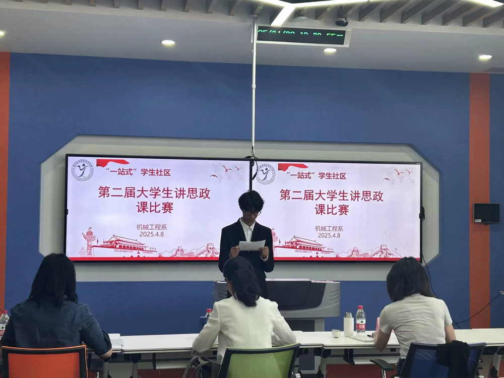 为深入推进思政课教学改革创新,充分发挥学生的主体作用,激发学生学习思政课的积极性、主动性和创造性,2025年4月8日,机械工程系举办了第二届大学生讲思政课比赛。此次比赛特别邀请了马克思主义学院副院长许青娟老师、原思政中心主任兼教学督导董志鸿老师担任专业评委,同时机械工程系辅导员原智慧、顾航也全程参与指导与评审。