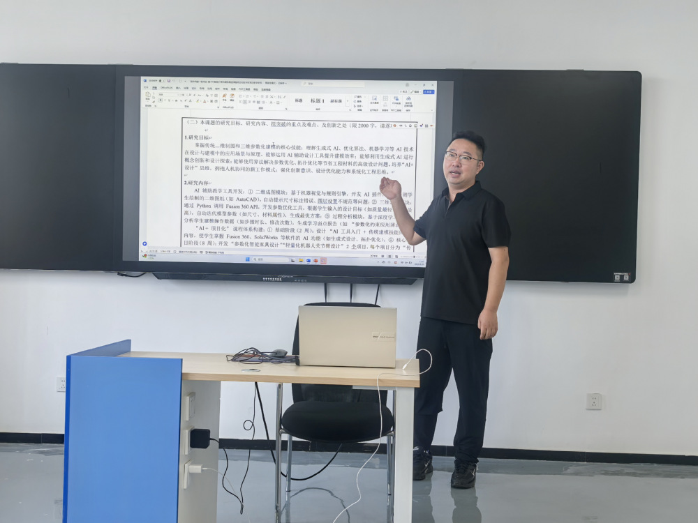 2025年9月30日,智能制造装备与自动化教研室成功举办本学期第五次教研活动。本次活动由徐磊老师主讲,聚焦“AI+课程”项目化改革设计,徐磊以其在主讲的UG软件的AI设计应用为例的研究为基础展开深入讲解,并分享了以此申报教改课题的计划。