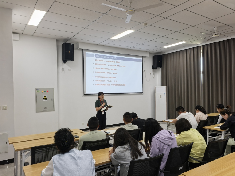 机械工程系党支部书记胡枫结合学校实际情况,对安全工作提出了具体要求。她强调老师们要主动学习学校11633安全文化,以123456工作办法为抓手,将安全文化融入到师生思想意识和安全工作各环节。同时,要建立人人参与安全管理、人人承担安全职责、人人都是安全员的工作机制,营造敢于管理、勇于管理、善于管理的校园安全工作氛围。此外,胡枫还对学期末安全工作要点进行了部署,涵盖系部实训实验室和工作室运行管理、学生宿舍安全管理、师生网络电信诈骗防范以及学生心理安全工作等多个方面,确保校园安全工作无死角、无盲区。