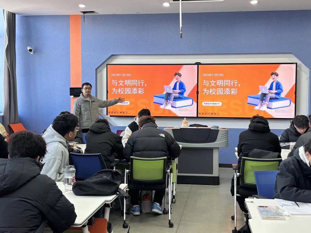 为响应学校文明素养提升月号召,11月19日,机械工程系党支部全体党员教师联系班级,以学工处推送的12篇文明礼仪推文为学习蓝本,开展主题学习活动,推动文明素养教育走深走实,取得显著成效。
