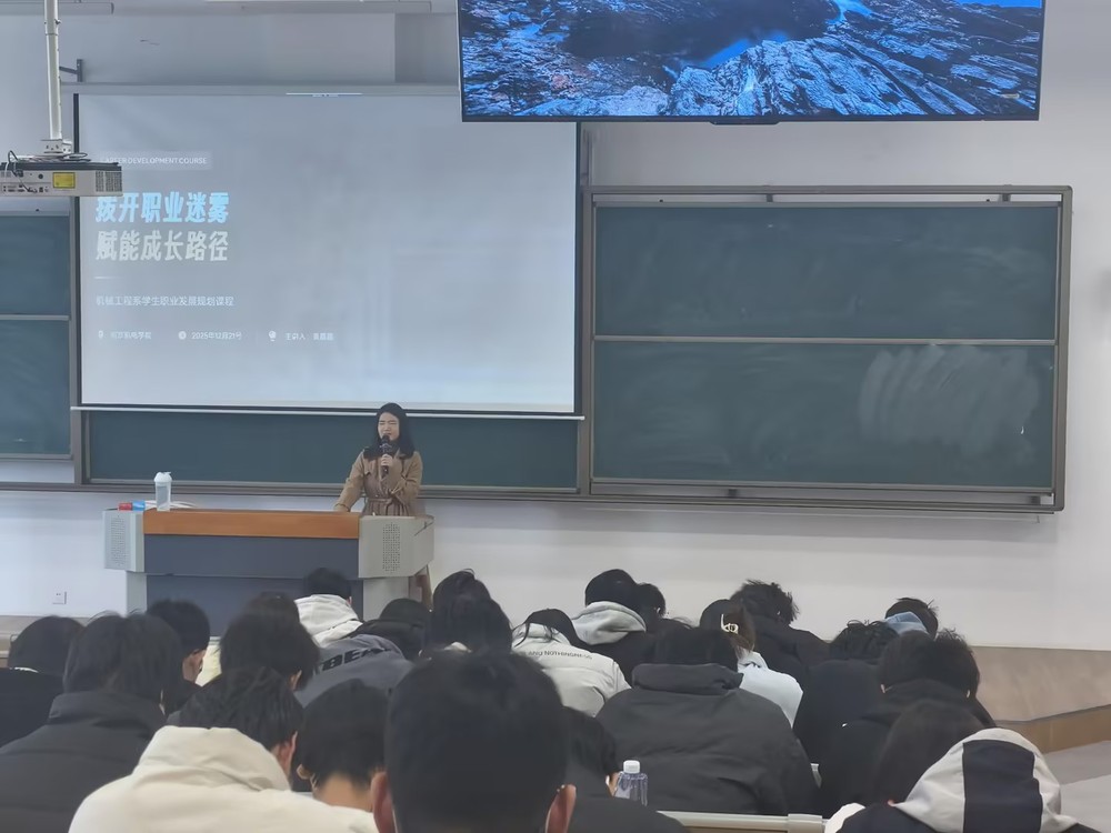 为帮助学生破解职业迷茫,明晰发展路径,扎实推进“一站式”学生社区建设,机械工程系于12月21日下午两点在善学楼102教室开展了以“拨开职业迷雾,赋能成长路径”为主题的职业生涯规划讲座,本次讲座由校外专家黄晶晶老师主讲,为大一、大二的机械学子送上了一份干货满满的职业发展“导航指南”,实现职业指导与社区服务的精准对接。