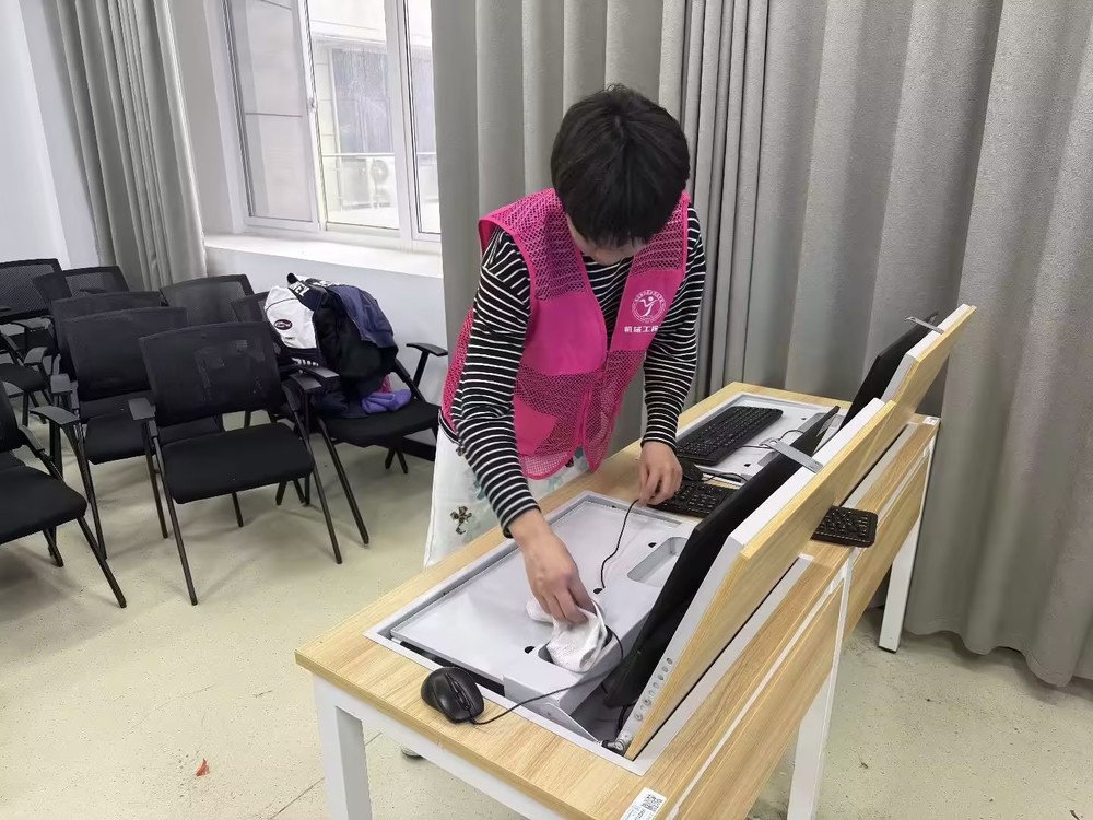 期末实训课程结束后,实训室内设备与场地需彻底清理维护。学生骨干们主动承担此项任务,分组对各类机床、数控设备、精密仪器及操作台、地面进行细致打扫。他们认真擦拭设备积尘,清扫油污碎屑,整理工具零件,不放过任何卫生死角。尽管天气寒冷,同学们依然热情投入,齐心协力,使实训室环境焕然一新。