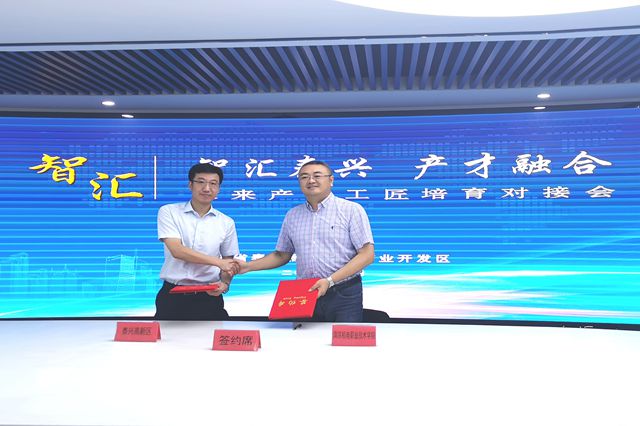 学院副院长刁爱军代表学院与江苏省泰兴高新技术产业开发区签订《产才融合战略合作协议》,学院党委书记、院长周庆礼向江苏省泰兴高新技术产业开发区授予“开云手机官方版页面登录入口未来产业工匠培育基地”铜牌。