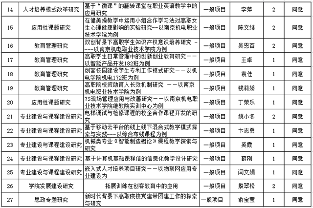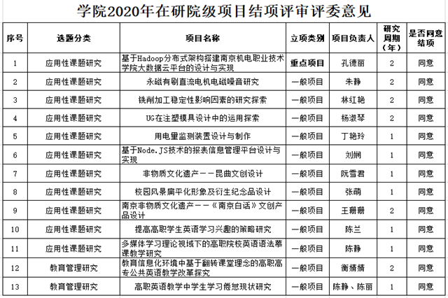 根据《关于2020年上半年院级在研科研项目结项的通知》、《开云手机官方版页面登录入口科研工作管理办法》机电学院〔2012〕19号、《开云手机官方版页面登录入口科研项目管理办法》机电学院〔2012〕20号文件精神,经科研及校企合作处审查,院学术委员会鉴定审核,批准我院2020年上半年学院在研科研项目27项通过结项鉴定。现将结项鉴定结果予以公示。