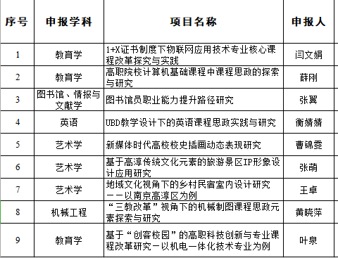 根据《省教育厅关于做好2021年度高校哲学社会科学研究项目申报工作的通知》(苏教社政函〔2021〕15号)文件的申报要求,我校今年拟推荐15项课题,一般项目9项,思政专项6项。