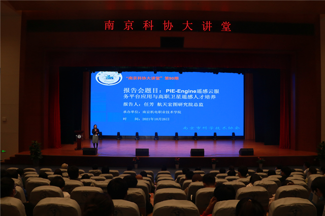 10月26日下午,2021下半年“南京科协大讲堂” (第90期,总第1032期)在我校多功能报告厅成功举办。我校科协诚邀航天宏图研究院总监任芳女士为学生开展了主题为《PIE-Engine遥感云服务平台应用与高职卫星遥感人才培养》的精彩讲座。因为疫情的原因,本期“南京科协大讲堂”采用线上讲座的方式,任总在北京总部与我校信息工程系300余名学生成功连线,活动由科研及校企合作处处长李木香主持。