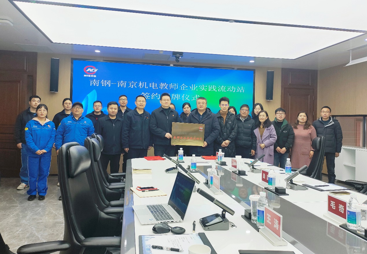 2024年3月6日上午,南京机电-南钢教师企业实践流动站签约授牌仪式在南京钢铁股份有限公司举行。南京钢铁股份有限公司人力资源部副部长孙斌,培训开发室主任仲崇波,规划配置室副主任王涛,学校党委委员、副校长刁爱军,科研及校企合作处处长李木香,机械工程系主任毛奇,高级督导潘理平等领导出席本次活动。南京机电-南钢教师企业实践流动站企业导师及进站教师参加了本次活动。本次签约授牌仪式为南京机电-南钢教师企业实践流动站建设与运行拉开了帷幕。