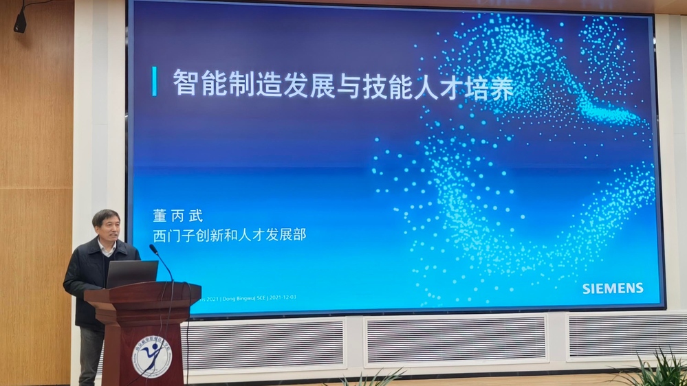 仪式后,董丙武以《智能制造发展与技能人才培养》为题作了技术报告,让我校师生充分感受到了智能制造的迅猛发展和技能人才培养的重要性。会后,校企领导共同参观了西门子实训室。