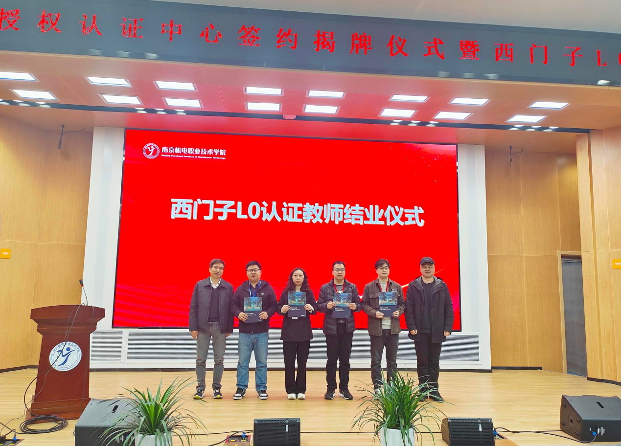 签约揭牌仪式上,宋明与刁爱军共同签署了《南京机电学院&西门子公司共建L0授权认证中心战略合作协议》,并共同为《南京机电学院&西门子公司L0授权认证中心》揭牌。董丙武和袁海嵘共同为西门子首批L0认证教师颁发结业证书。西门子创新与人才发展部技术研发经理李瑊与张海红共同为L0认证首期学生代表及班主任颁发班牌。在这个广阔的学习平台上,我校师生将充分把握实践机会,不断提升专业水平与实践能力。