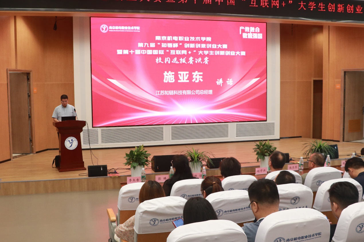 颁奖仪式上,学校党委委员、副校长刁爱军作总结发言。刁爱军指出全校师生以敏锐的洞察力、独特的创意和扎实的专业知识,呈现出了一系列叹为观止的创新创意创业教育成果。同时,大赛涌现出许多校企合作项目和岗位创新项目,不仅解决了生产中的实际问题,还促进了技术成果的转化和应用,是产教融合、数智驱动的生动体现。他勉励参赛师生继续秉持“知行合一、自强不息”的校训精神,开拓创新、锐意进取,以更加饱满的热情、更加坚定的信念,迎接新的挑战和机遇。江苏知链科技有限公司总经理施亚东认为每一个作品都是对传统边界的勇敢跨越,是对未知领域的积极探索,创新创意创业大赛为学校师生搭建了一个思维碰撞的舞台,记录了创意从萌芽到绽放的精彩过程,展现了当代青年的蓬勃朝气和卓越才华。