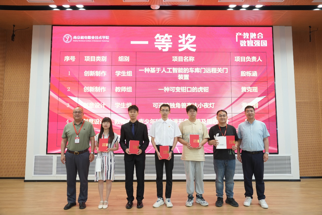 学校党委副书记、副校长赵学洪宣读了本次大赛的评审结果。最终,《一种基于人工智能的车库门远程关门装置》等5个作品获一等奖,《果蔬采摘机器人》等10个作品获二等奖,《南机电印象文创小店》等15个作品获三等奖,《智慧电梯维保数字化平台》等4个作品获单项奖。