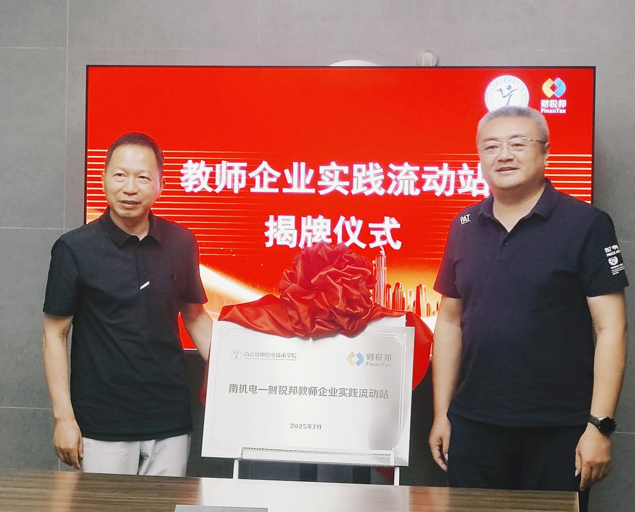 2025年7月14日,南机电-财税邦教师企业实践流动站签约授牌仪式在江苏财税邦科技有限公司举行。江苏财税邦科技有限公司创始人兼总经理毛友俊,总经理高霞,运营总监杨青培训总监张苗苗,学校党委委员、副校长刁爱军,科研及校企合作处处长李木香,人文社科系副主任啜春红等领导出席本次活动,南机电-财税邦教师企业实践流动站全体进站教师及企业导师参加本次活动,共同见证南机电-财税邦教师企业实践流动站建设与运行拉开帷幕。