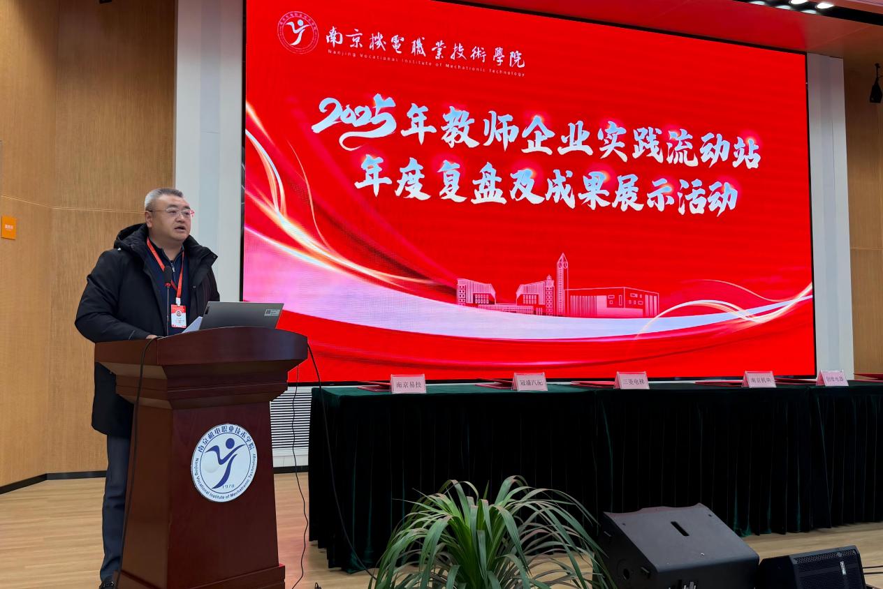 2026年1月21日下午,2025年教师企业实践流动站年终复盘及成果展示活动在学校乐学楼报告厅举行,全面总结一年来教师企业实践流动站的建设成效,表彰先进典型,共谋未来发展蓝图。南京高淳高新技术产业开发区管理办公室副主任吕鹏飞、南京高等职业教育创新创业园管委会副主任汪春荣、南京市高淳区工业和信息化局产业推进科科长孙立琰,学校党委书记、校长周庆礼,党委委员、副校长刁爱军、以及来自南京钢铁股份有限公司等合作企业领导,学校职能部门、系部负责人等领导出席活动,流动站团队成员及全体专业教师共200余人参加本次活动。活动由科研及校企合作处教师朱洪霞主持。