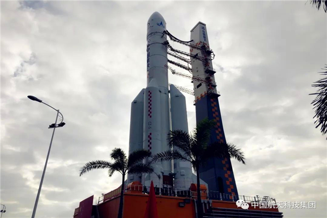 11月17日,长征五号遥五运载火箭和嫦娥五号探测器在中国文昌航天发射场完成技术区总装测试工作后,垂直转运至发射区,计划于11月下旬择机实施发射。