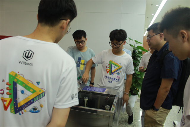 本次比赛采用校内选拔、线上初审、现场决赛的方式进行,吸引了来自江苏、安徽、 河南等省份数十所高校共计 700 余名选手报名参赛, 硕士以上学历参赛选手超过40%,保持了赛事的高水准。我校对本项赛事高度重视,并以高等院校“十三五”应用型人才培养规划教材--《大学生创新思维训练教程》为教材对学生进行了创新思维培训。学生完成了创意构思、创新设计、项目制作,并参加了校内评审和线上初审。经过初审,我校 “奋斗的蚂蚱”、“奋斗的蚂蚁”、“星梦馆”、“爱之光”、“蓝岛创客1对”等五支由一年级学生为主的创客团队携其他学校的30支团队共同入围中美青年创客大赛南京赛区选拔赛。经过一天激烈的角逐,我校五支团队均获赛事优秀奖,达到了赛场练兵的效果,为以后的创客比赛做好准备。