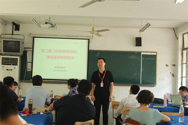 7月14日-15日,为进一步培养创新思维训练课程师资,提高人才培养质量,蓝岛创客空间组织我院共36名教师开展了第二期创客思维训练课程师资培训。本次培训师资为南京众创空间理事长郑岩峰,南京宿蜂网络科技有限公司总经理朱俊,我校创客导师杨阳,创客导师黄克瑶。
