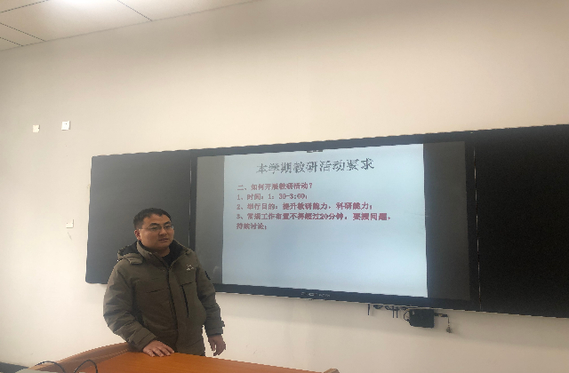 首先,黄克瑶老师对本学期的教研活动要求做了详细讲解,本学期教研活动固定时间(每周二下午的1点30至3点)固定地点(思学楼101)举行。他强调教研室成员在课堂中要加强意识形态教育,课堂中禁止讨论尚未定论的社会热点问题,并再次组织学习了师德师风负面清单。本学期教研活动中要摆问题,围绕专业建设、课程建设、教法改革、教材建设等内容进行讨论研究。采用案例分析、头脑风暴等方法多形式的调动教师们的参与积极性,发散教师们的思维,鼓励教研室成员轮流主持教研活动。接着,蓝岛创客空间王国珍主任就如何完成“十四五”专业建设任务做了进一步说明,强调了诚信(为品)、奋进(为志)、创新(为核)、开放(为道)、共享(为义)的教学理念。
