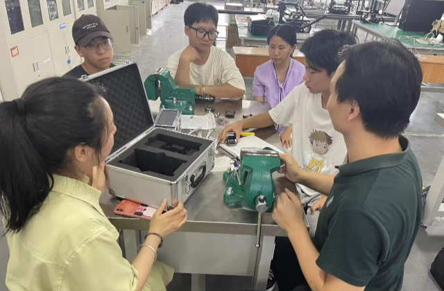 接着,团队师生分为5组进行2U模型立方星的拆解。唐老师一边进行星务数据传输和星务板的介绍,一边指导各小组成员对教学仿真卫星进行拆解。各小组成员按照唐老师的讲解,按步骤将卫星包含2个太阳能板在内的四个板和上下顶板拆卸下来,详细记录每个零部件的数量并分类存放。