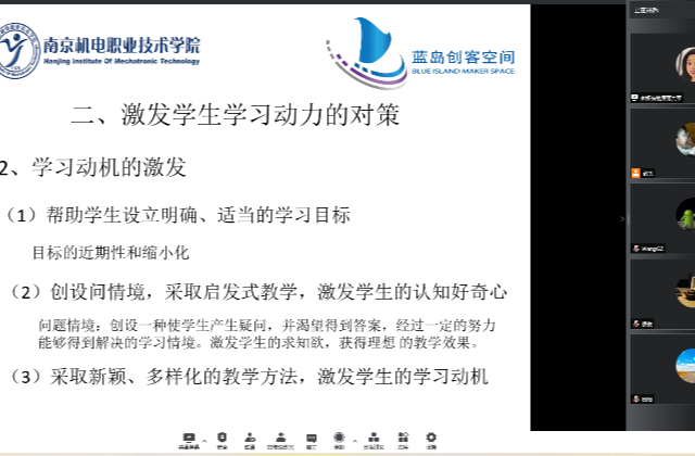 学生的学习动力取决于兴趣,兴趣又往往来源于教师的讲授和有目的培养。9月27日,蓝岛创客空间创新教研室以“如何激发学生的学习动力”为主题开展了线上教研活动。本次教研活动由蓝岛创客空间朱妍焘老师主持,蓝岛创客空间王国珍主任及教研室全体老师参加了本次教研活动。