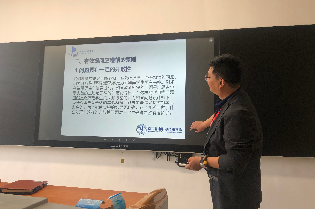 最后,王国珍主任对“如何有效组织课堂讨论”进行了论述,并建议在课堂中使用头脑风暴法和问题列举法提高课堂讨论的有效性。并且对第六期“双创教育试点班暨大国工匠班”学生选拔面试的评委会和志愿者培训提出了要求。