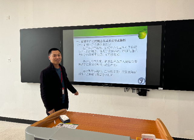 接着,教研室全体教师就职业教育赋能新质生产力的要素配置展开讨论。黄克瑶老师提出新质生产力形成需要科技创新人才和高素质技术技能人才,教师创新团队是要素配置之一。候俊老师认为新质生产力是通过操作机器甚至是让智能机器人完成制造过程,劳动者技术技能的具身性开始向机器设备延伸。职业院校需要建设实习实训基地,服务于专业教师技术研发、学生实习实训,是职业教育赋能新质生产力的必备要素配置。朱妍焘老师补充了新质生产力是以技术进步改造传统产业,进而形成先进的工艺和流程,使传统产业焕发新活力,产生新动能,相应的职业教育也需要不断对传统课程进行改造。同时,与新质生产力形成与发展所需的制度环境建设相对应,职业教育也要逐步完善管理制度。因此,专业技能课程和教育管理制度也是职业教育赋能新质生产力的重要要素配置。