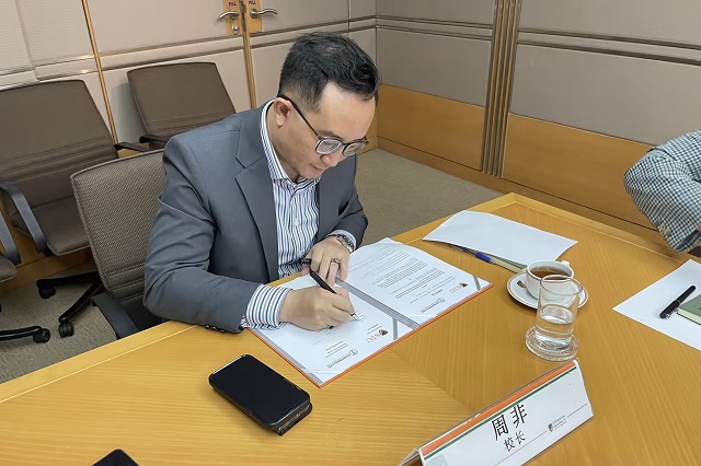 姜振宇对学校的历史沿革和当前发展情况作了详细的介绍,着重介绍了我校近年来在国际合作等方面取得的成果,以及未来师资提升、学生交流等方面的规划和建设。希望本次签署协议能成为一个良好的契机,推动两校合作交流深度发展,给两校师生提供更多宝贵的学习和交流机会。
