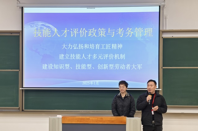 彭舢围绕技能人才评价政策沿革、目前技能人才评价的改革成果及技能等级认定工作流程等方面进行授课。培训内容注重理论和实践相结合,从职业技能等级认定考务管理、认定须知、技能等级认定考评员管理、技能等级认定质量督导员管理、题库运行管理与命题要求等方面,系统讲授了职业技能等级认定的政策依据,分析了当前社会普遍在认定工作中存在的问题。培训结束后,全体培训人员进行了理论考核。