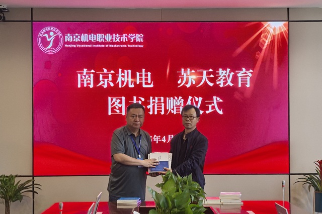 随后,苏天教育科技股份有限公司董事长成东中分享了苏天教育多年来在专转本教育领域的探索与坚持,表达了对同学们的殷切期望。接着成东中代表苏天教育进行图书捐赠,学校图书馆馆长张翼作为校方代表接收捐赠图书。此次捐赠图书涉及马克思主义理论、高等数学、大学语文及机械、电子等六大类专业课共计220册。
