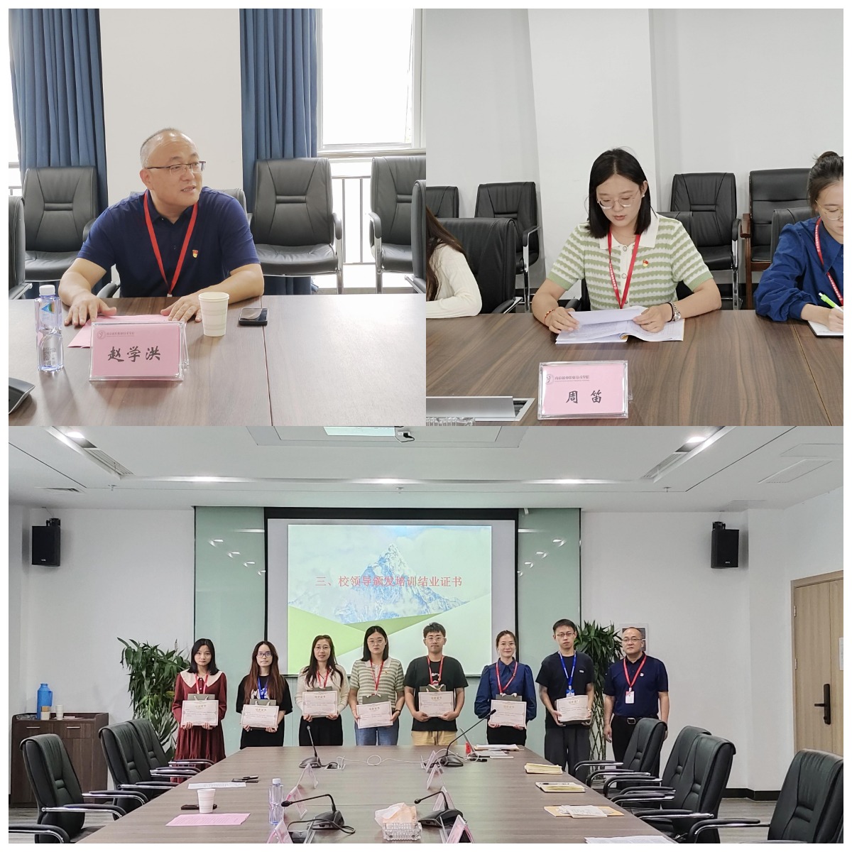 结业仪式上,学院党委委员、副院长赵学洪为2022年新进教职工颁发结业证书和纪念品。赵院长在祝贺全体新进教职工取得结业证书的同时,也对他们提出了三点希望:一是严格遵守师德师风,作为新进教职工,尤其需要坚守师德底线;二是拓宽学习广度与深度,必须牢固树立终身学习理念,自觉主动学习各类知识,践行课程思政,将思政元素融入自己的教学和工作中,朝着经师和人师方向而努力;三是坚持创新思维实践。希望大家能充分运用所学的新知识、新理论,充分借鉴创新经验和做法,紧密结合自己的岗位工作,把学习的成果转化为实际工作的能力。