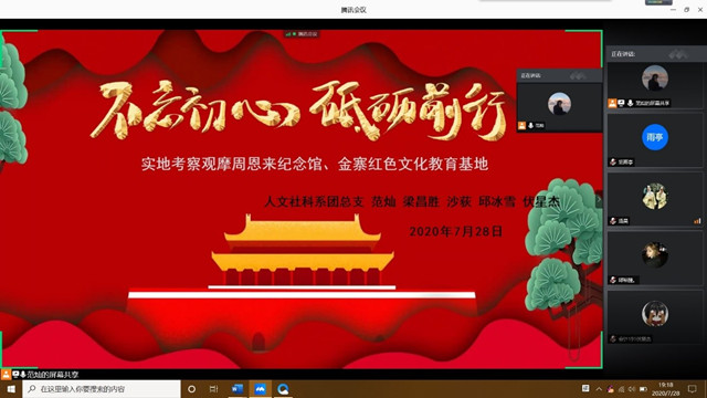 7月28日晚,我系2020年暑期社会实践团队立项答辩评审会通过腾讯会议在线上举行,系团总支书记杨军老师、各申报团队负责人、团总支全体团干部参加会议。会议由系团总支监察部沙荻同学主持。
