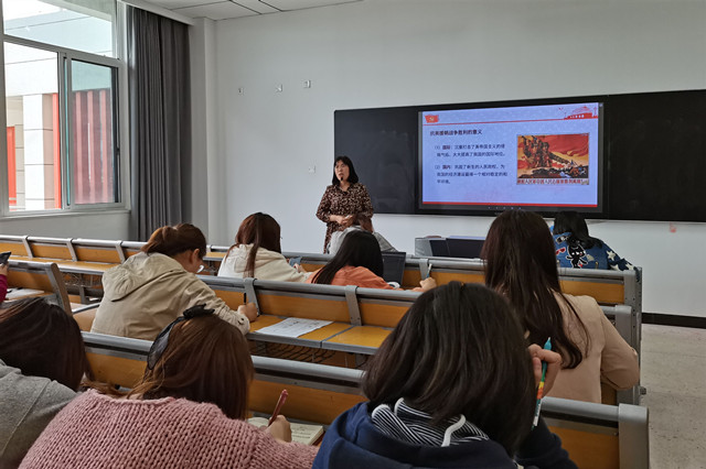 5月20日下午,人文社科系全体教职工在博学楼205教室开展了第四次党史学习集中分享,本次学习由思政中心高杉老师主讲。