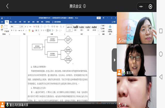 2021年11月2日下午1:30,思政中心利用腾讯会议召开线上线下教学研讨会,会议由董志鸿老师主持。会议的主题是关于市级哲学社会科学重点研究基地申报书的研讨。