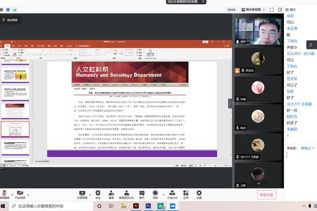 为了帮助学生干部进一步了解掌握新媒体相关知识及技能,提高新闻稿写作水平,12月23日晚,人文社科系团总支举办“素养公开课——学生干部新闻稿件专题培训”。培训由人文社科系团总支书记杨军老师主讲,人文社科系全系团干部通过线上方式参加学习。