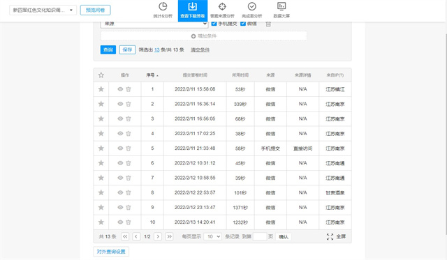 为了能让更多人加深对于红色文化的知识,在实践活动拜访任务结束之后,各地的团队成员结合了各大纪念馆的文化历史,制作出了线上调查问卷,并且进行了大范围的宣传和发放,进一步的扩大了实践活动的影响力,在活动结束时已累计过百的填写量和上万的浏览量。