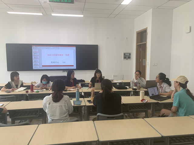 接着,大家围绕着如何上好新学期第一堂课进行了热烈的讨论。高杉老师指出,围绕学生、学校、课程等进行问卷调查,对学情的精准分析很有必要。陈璐璐提出“三精三介”,即精心备教材、精心备学生、精心备自己;向学生介绍学校、向学生介绍课程、向学生介绍专业。杨劲静老师指出,向学生们介绍优秀学长的故事,给同学们树立一个个鲜活的榜样。