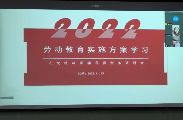 为充分发挥劳动教育在树德、增智、强体、育美的综合育人功能,推动新时代劳动教育在我系落实落细,11月15日下午,人文社科系学生管理团队组织了大学生劳动教育实施方案学习研讨会,“红色灯塔”辅导员工作室全体成员参加了会议。