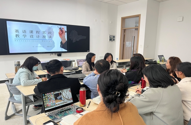 会上,陈兰老师首先对英语课程思政内容重点作了梳理,并结合课堂实际教学的思政,与大家就英语教学设计进行了分享和探讨。