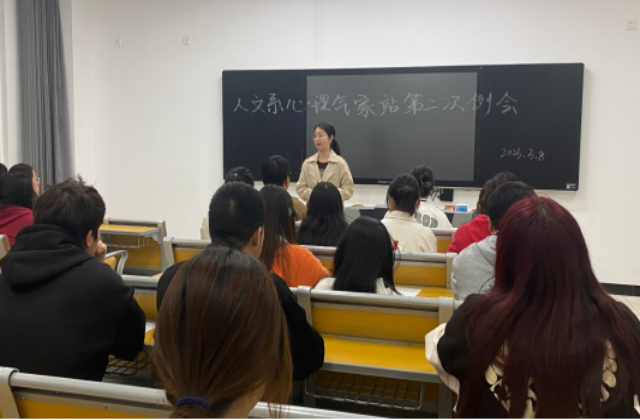 2023年3月8日晚,人文社科系心理气象站第二次例会于博学楼207教室内顺利召开,本次例会由系部心理气象站站长沈婷老师主持。