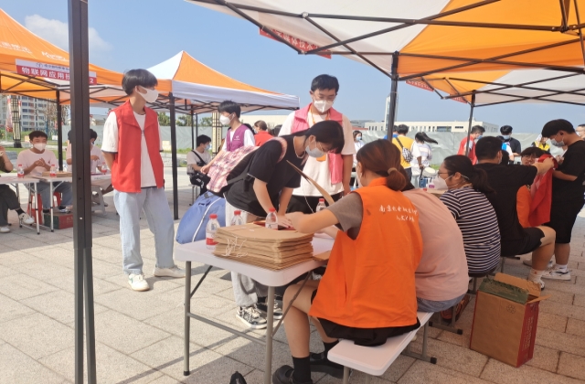 2022年9月12日,在严格遵守疫情防控要求的基础上,人文社科系全体志愿者和老师们克服烈日炎炎,为2022级新生入学报到提供暖心关怀。