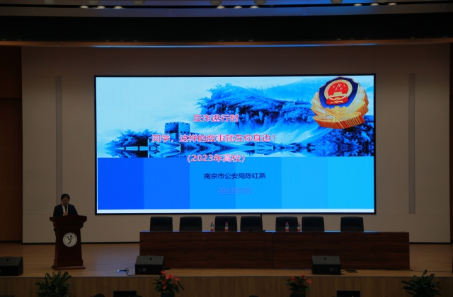 为了进一步提升大学生反诈防骗意识和能力,切实维护校园安全和大学生财产安全,人文社科系于2023年9月20日下午18点30分在乐学楼101举办了“识诈防诈反诈”能力提升专题讲座,特邀南京市公安局内保支队首席反诈专家陈红燕警官宣讲,师生共计400余人聆听了这次讲座。