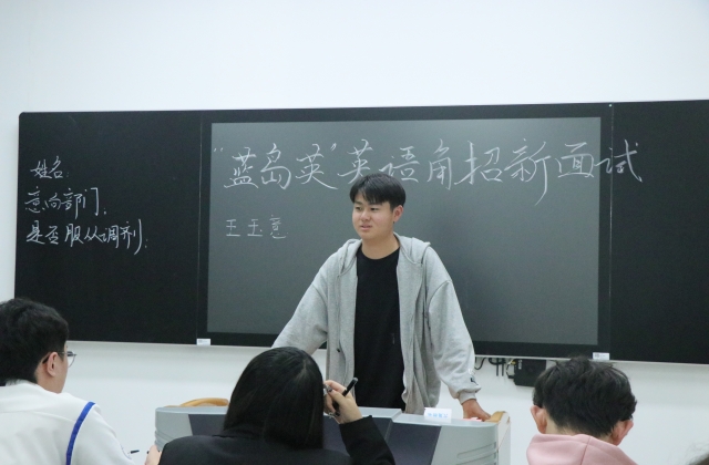 活动现场,学生们在充分准备过后,依次上台进行英语自我介绍。同学们通过亲身体验,深刻感受到“蓝岛英”英语角为他们在口语交流方面带来的帮助。他们精彩的英语自我介绍,表达了自己想要加入“蓝岛英”英语角的热情和工作的渴望。