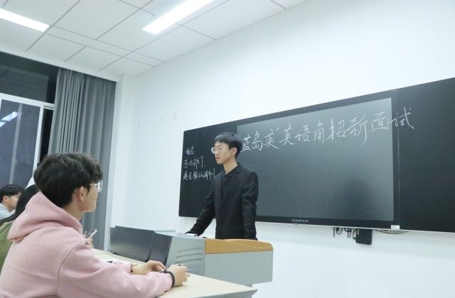 之后,各项活动负责人就自我介绍的表现提出相应的问题,考察同学们对于活动的理解,根据活动开展中各项工作性质和重点,探析同学们的综合能力。面对这些问题,同学们从容不迫,对答如流,展现着自己自信的风采。在激烈的角逐中,许多同学展现出了出色的英语口语表达能力。