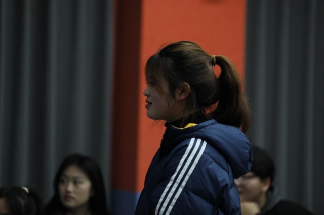 抢答成功后,小组组长派出代表进行答题,答题代表将捕捉到的素材——“芦苇”作为意象给出答案,分别对“秋意渐浓时,芦苇舞翩翩”“芦苇晚风起,秋江鳞甲生”和“高士想江湖,湖闲庭植芦”等相关诗句进行讲解。讲解过程语言流利,拓展丰富,让同学们既增加了对校园文化的了解又加强了对古诗词的学习。