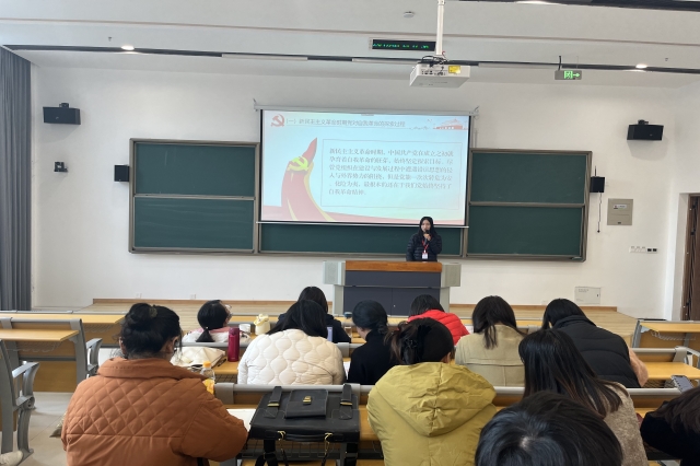 李老师首先强调,在党的二十大报告中指出,全面从严治党永远在路上,党的自我革命永远在路上,决不能有松劲歇脚、疲劳厌战的情绪,必须持之以恒推进全面从严治党,深入推进新时代党的建设新的伟大工程,以党的自我革命引领社会革命。她认为这一重要论述,彰显了我们党一以贯之坚持自我革命的坚定决心,标志着我们党对自身建设规律和执政规律的认识达到了新高度。随后她围绕“中国共产党自我革命的发展历程”“中国共产党自我革命的基本经验”等方面带领大家进行细致地学习。
