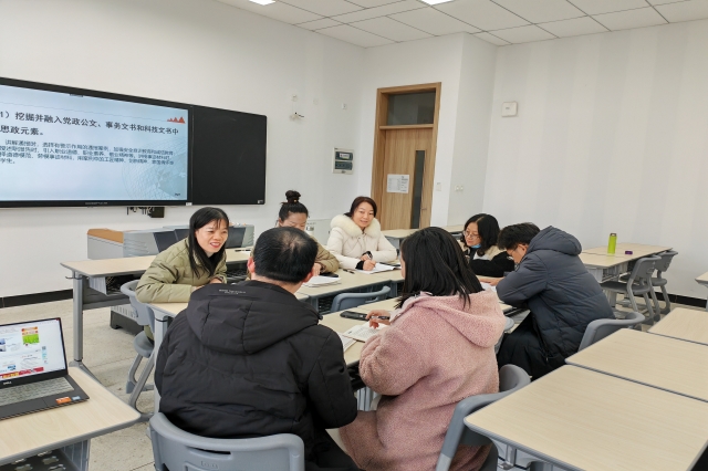 2023年12月12日下午,数学和语文教研室全体老师在思学楼112展开了第15周教研活动,教研活动由蔡云老师主持,主题是讨论如何在应用文写作课程中融入课程思政,实现思政育人。