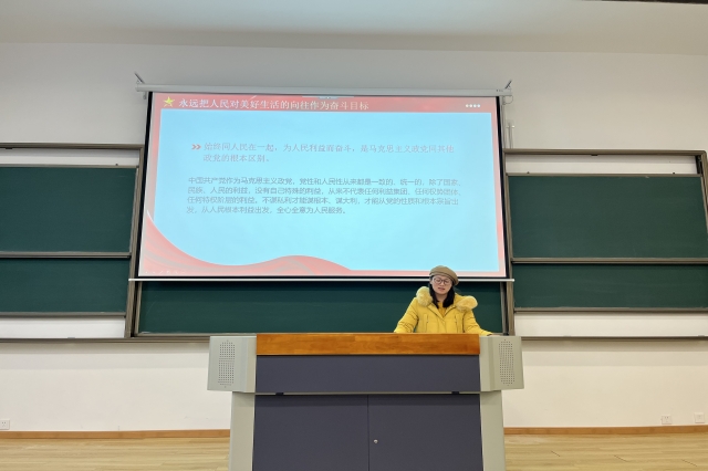 梁老师围绕着“坚持以人民为中心”这一主题,分别从“江山就是人民,人民就是江山”“永远把人民对美好生活的向往作为奋斗目标”“扎实推进全体人民共同富裕”“群众路线是党的生命线和根本工作路线”等内容进行深入地阐述。她指出,中华民族迎来了从站起来、富起来到强起来的伟大飞跃是中国人民共同奋斗出来的,必须深刻认识人民群众是历史发展和社会进步的主体力量,要坚持以人民为中心的发展思想,坚持发展为了人民、发展依靠人民、发展成果由人民共享。