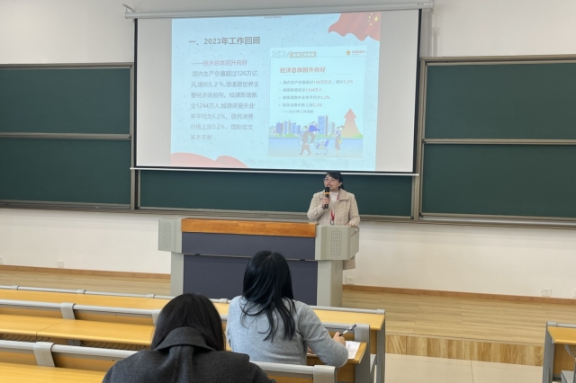2024年3月5日上午9时,第十四届全国人民代表大会第二次会议在人民大会堂举行开幕会。国务院总理李强代表国务院向十四届全国人大二次会议作《政府工作报告》。为了进一步认真学习《政府工作报告》,领会全国两会精神,3月12日下午,人文社科系党支部在勤学楼105组织开展《政府工作报告》专题学习。本次学习由思政中心陈璐璐老师主讲,人文社科系全体教职工参加。