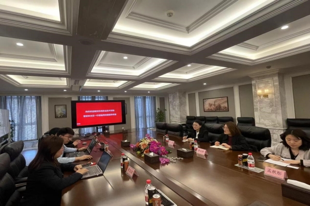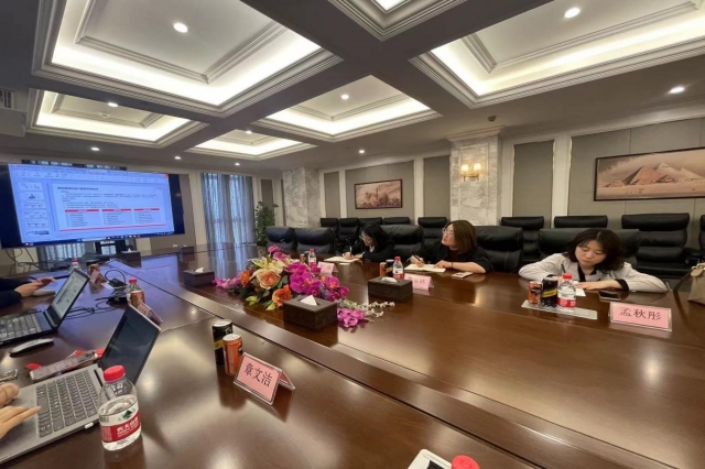 随后,三人与企业领导在会议室开展了深入的交流。由同花顺高校事业部销售总监章文杰对同花顺的公司概况、业务范围、发展历程、核心产品及服务等方面进行了介绍,接着同花顺高校事业部运营负责人陈城进一步阐述了校企共建专业实践课程方案及相关案例。同时,系部领导向企业了解了公司招聘需求及条件。