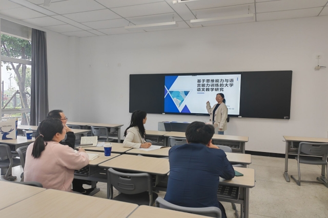 2024年4月30日下午,数学语文综合教研室全体老师在思学楼112展开了第九周教研活动,会议由蔡云老师主持,主题是基于思维能力与语言能力训练的大学语文教学研究。